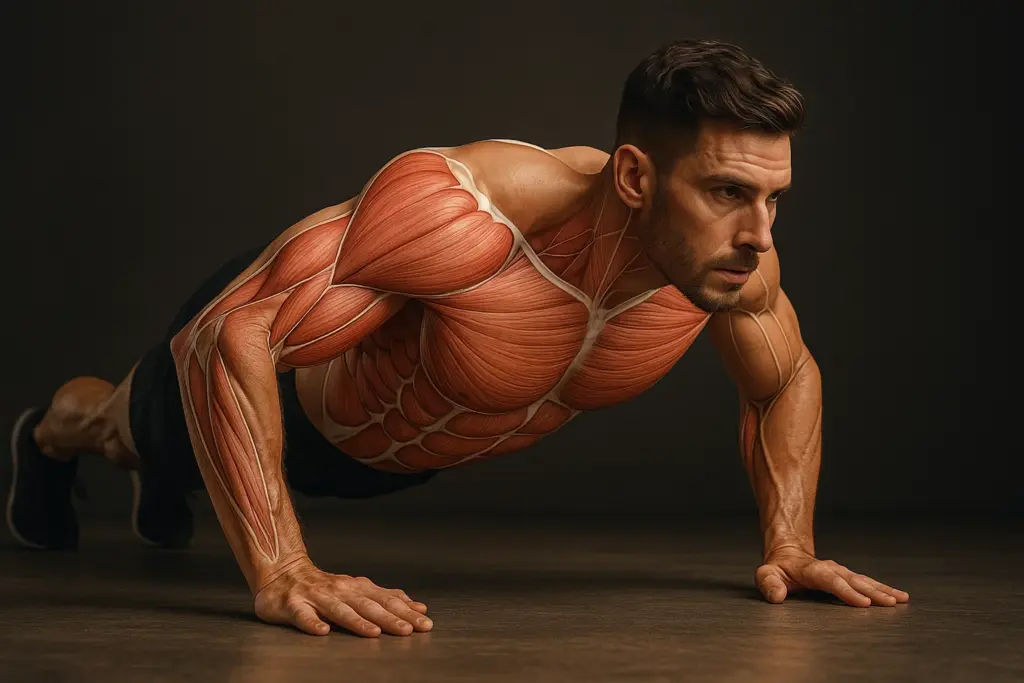 Specifically, push ups target the pectoralis major — the large chest muscle responsible for pressing and pushing motions. The triceps brachii on the back of your upper arms provide power to extend your elbows as you push away from the ground. Meanwhile, the anterior deltoids in your shoulders stabilize and assist with upward motion. Together, these muscles form the powerhouse that drives every push up repetition.